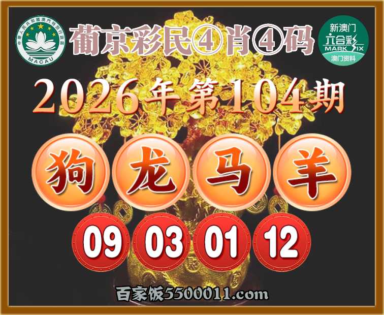 104期:《葡京彩民》 🕯④肖④码🕯【狗龙马羊】【09.03.01.12】开:00准