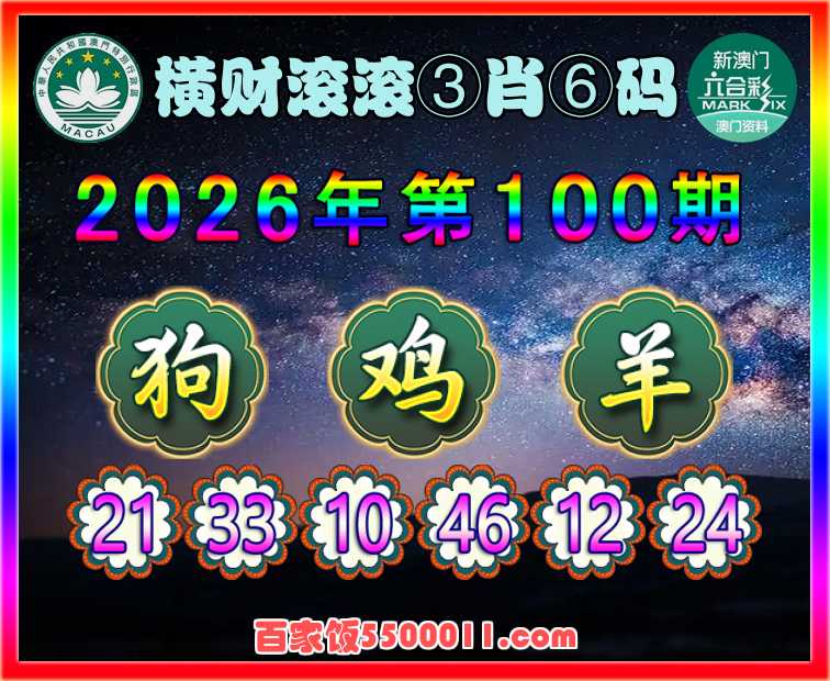 100期:《横财滚滚》 ♠️③肖⑥码♠️【鸡羊】开:狗33