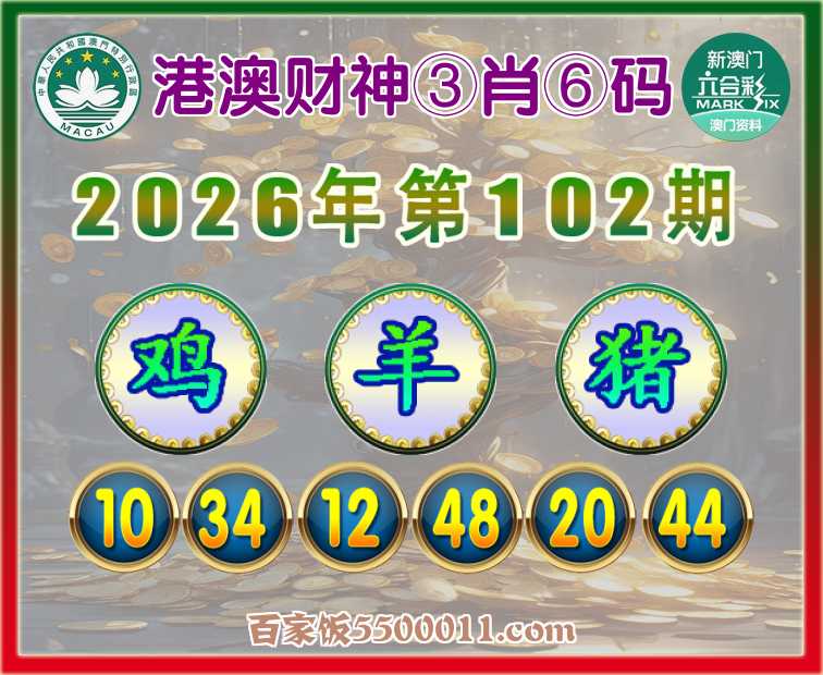 102期:《港澳财神》 ☺️③肖⑥码☺️【鸡羊】开:猪20