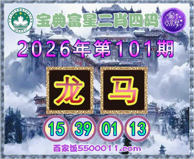 101期:【宝典富星】 🥠二肖四码🥠【马】【15.39.01.13】开:龙39