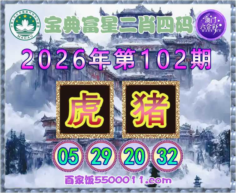 102期:【宝典富星】 🥠二肖四码🥠【虎】【05.29.20.32】开:猪20