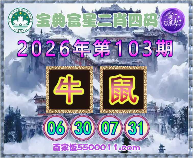 103期:【宝典富星】 🥠二肖四码🥠【鼠】【06.30.07.31】开:牛06