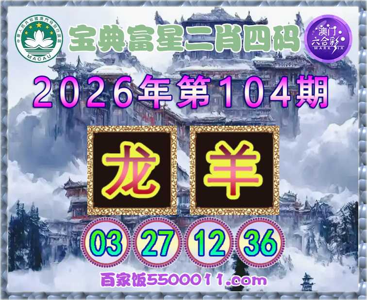 104期:【宝典富星】 🥠二肖四码🥠【龙羊】【03.27.12.36】开:00准