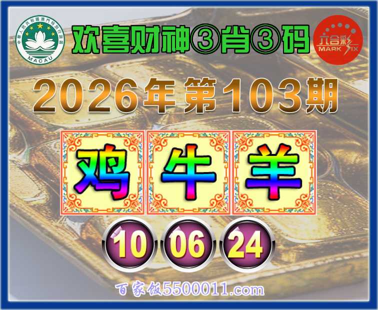 103期:【欢喜财神】 🧧③肖③码🧧【鸡羊】【10.06.24】开:牛06