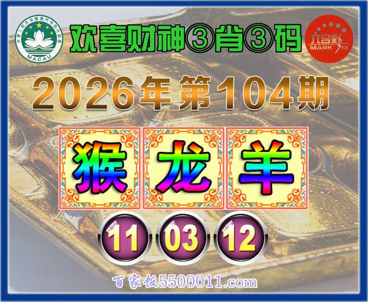 104期:【欢喜财神】 🧧③肖③码🧧【猴龙羊】【11.03.12】开:00准